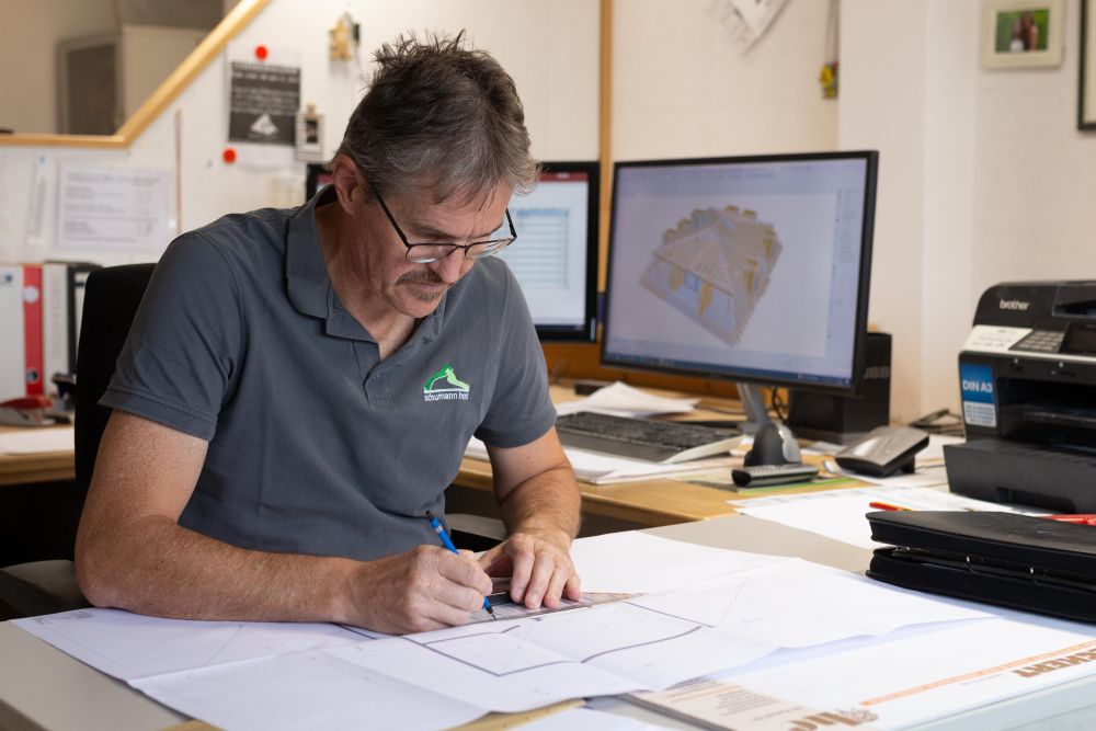 Alles beginnt mit einem persönlichen Kontakt: Unsere erfahrenen Arbeitsvorbereiter nehmen Ihren Auftrag an und besprechen mit Ihnen alle Details und das weitere Vorgehen für Ihr Bauvorhaben. Ihr Ansprechpartner begleitet ab jetzt Ihr Projekt und steht Ihnen während aller Schritte mit Rat und Tat zur Seite. Als Zimmerermeister haben unsere Arbeitsvorbereiter eine hohe Fachkompetenz und zeichnen sich durch ihre langjährige Erfahrung und Flexibiltät aus. Damit erhält Ihr Projekt ein erstklassiges montagefreundliches und passgenaues Planungsergebnis. Mit den entstandenen Schnitten, Grundrissen und 3D-Ansichten besprechen wir den Auftrag noch einmal präzise, bereiten Montagepläne vor und legen Liefertermine fest.