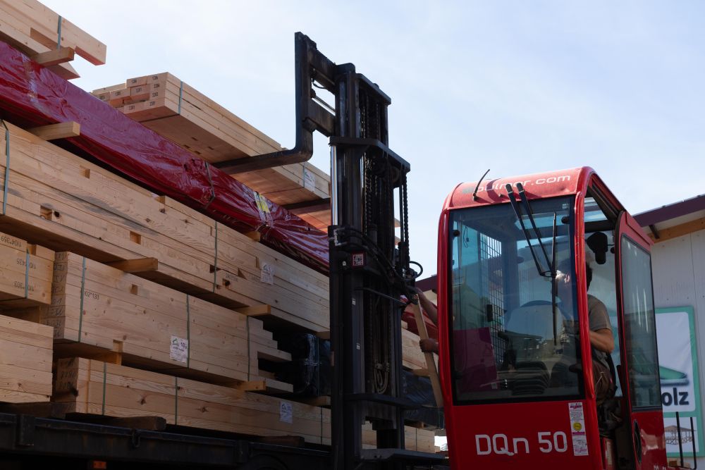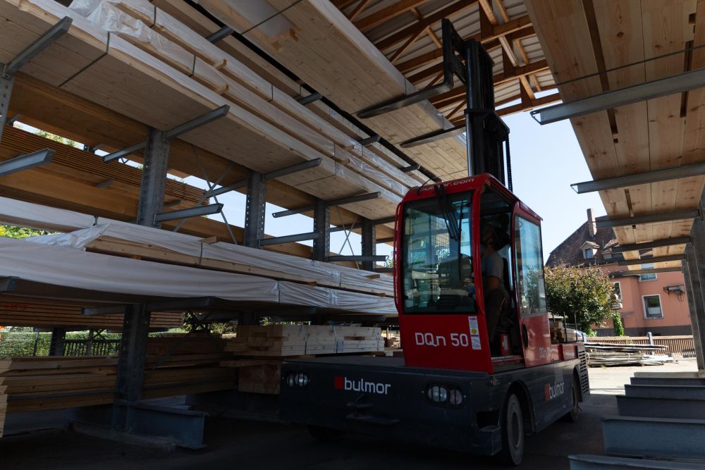 Bevor das Bauvorhaben ausgeliefert wird, lagern wir es bei uns in unserem Lager. Sie sparen sich Lagerplatz und rufen das Bauvorhaben zum Aufrichttermin bei uns ab.