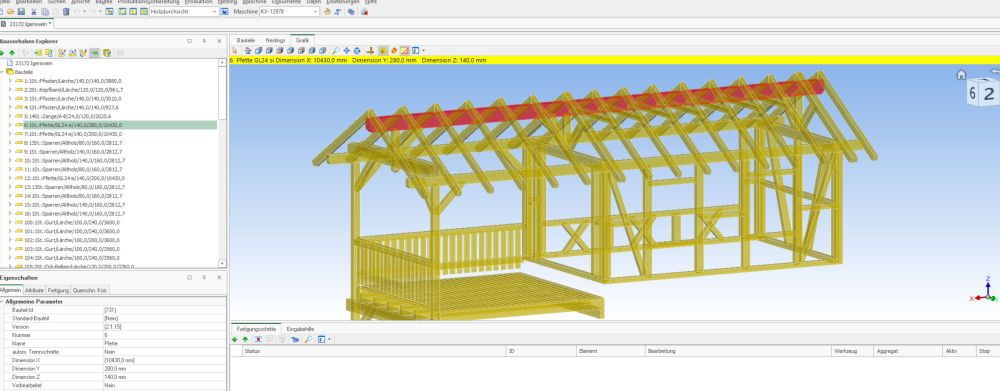 Wir bereiten Ihr Bauvorhaben im Hundegger-BVX-Format auf und bestimmen die bestmögliche Bearbeitungstrategie für unsere Abbundanlage. Die Zuordnung der Bauteile in die Pakete erfolgt verladungsgerecht und nach Ihren Wünschen, sodass auf der Baustelle Montagezeit gespart werden kann.