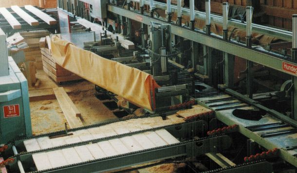 In diesem Jahr fand der Start in die Abbundproduktion mit der Anschaffung einer Hundegger-Abbundanlage Typ P10 statt. Produzierte man bisher im eigenen Sägewerk nur Balken für das Zimmererhandwerk, war man jetzt in der Lage komplett abgebundene Bausätze für Dächer und Holzkonstruktionen anzubieten.