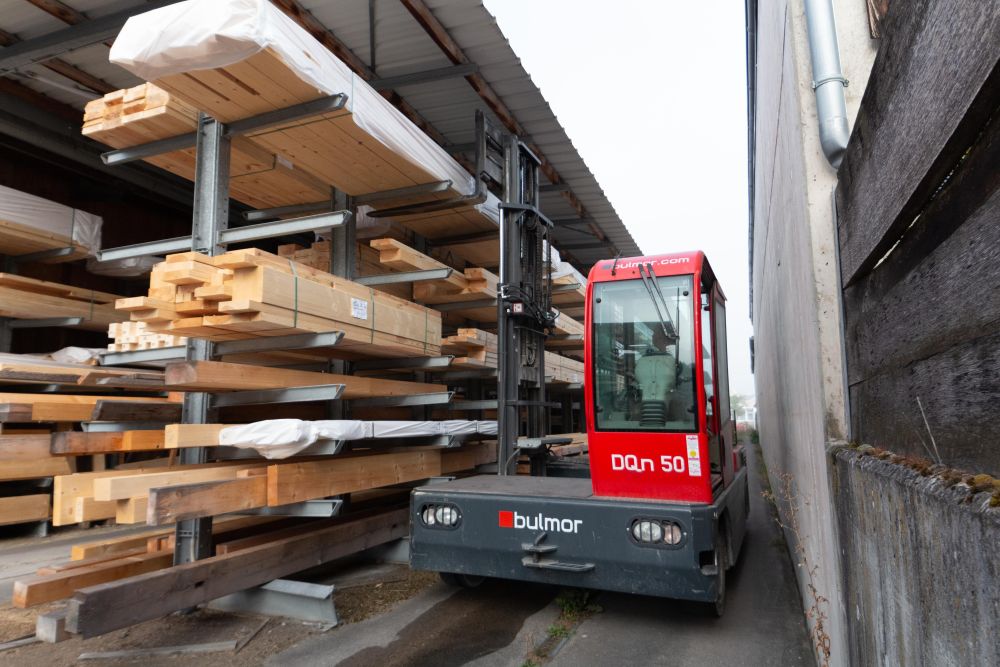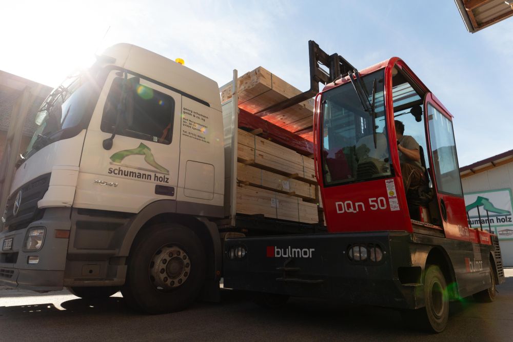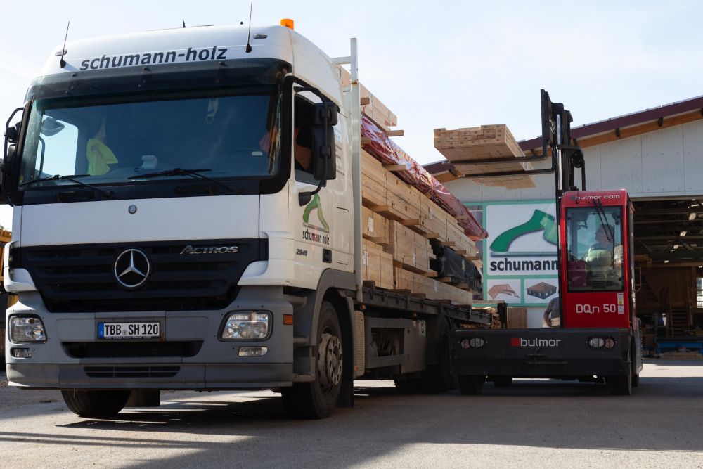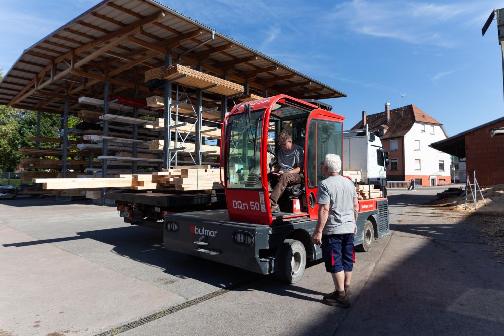Bevor das Bauvorhaben ausgeliefert wird, lagern wir es bei uns in unserem Lager. Sie sparen sich Lagerplatz und rufen das Bauvorhaben zum Aufrichttermin bei uns ab.